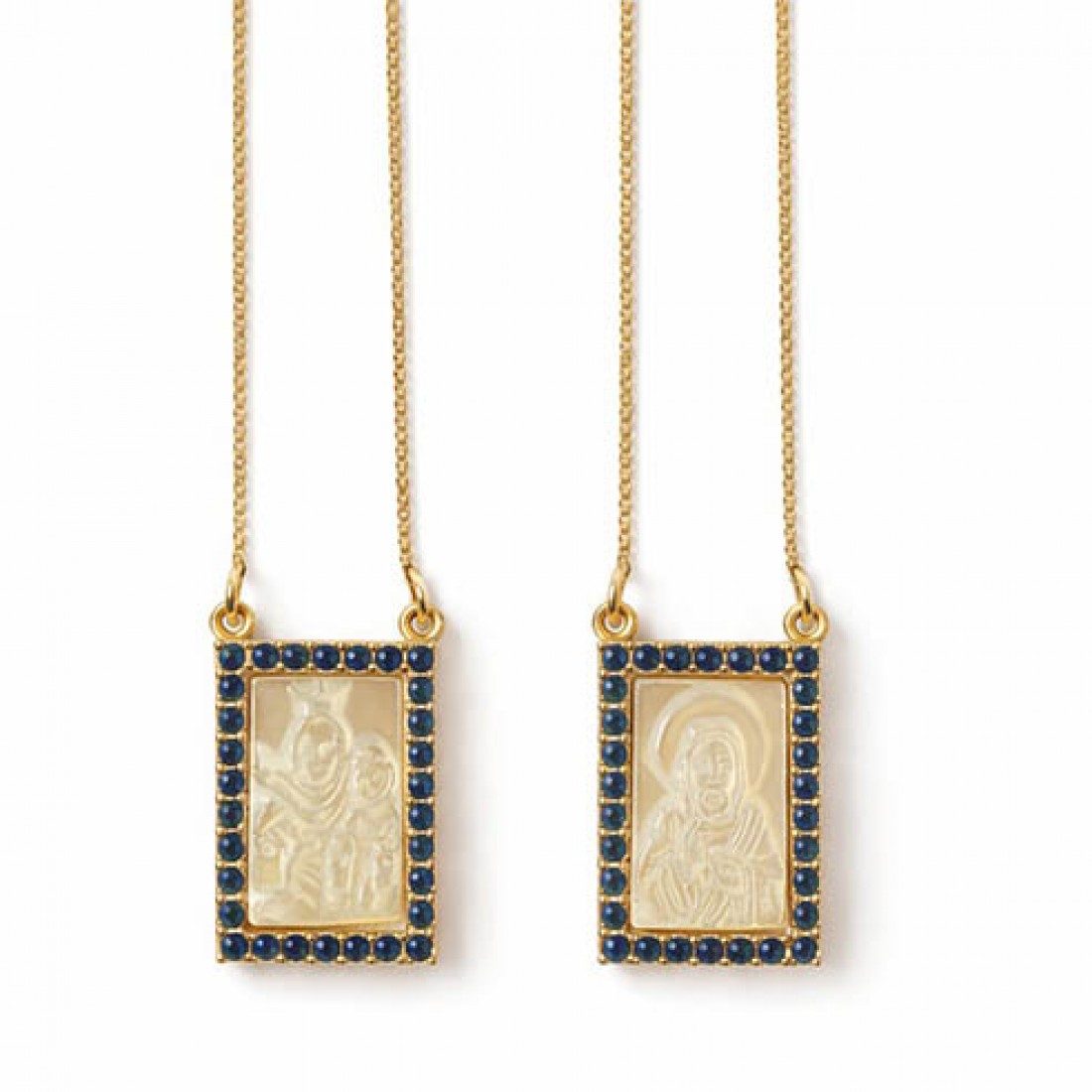 • Escapulario retangular nossa senhora do carmo zirconia azul safira em volta, 9X6mm. 1606852