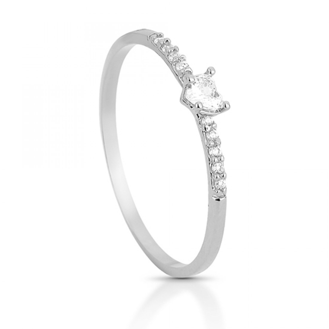 Anel solitario coracao pequeno zirconia cristal no centro e nas laterais, prata com banho de ouro...