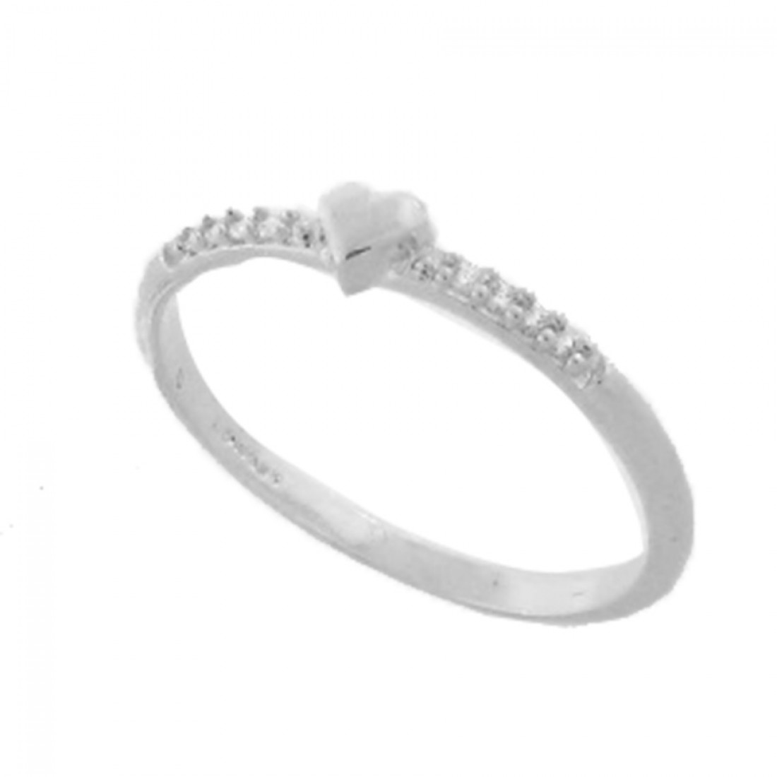 Anel fino com coracao liso e zirconia cristal nas laterais, prata com banho de ouro...