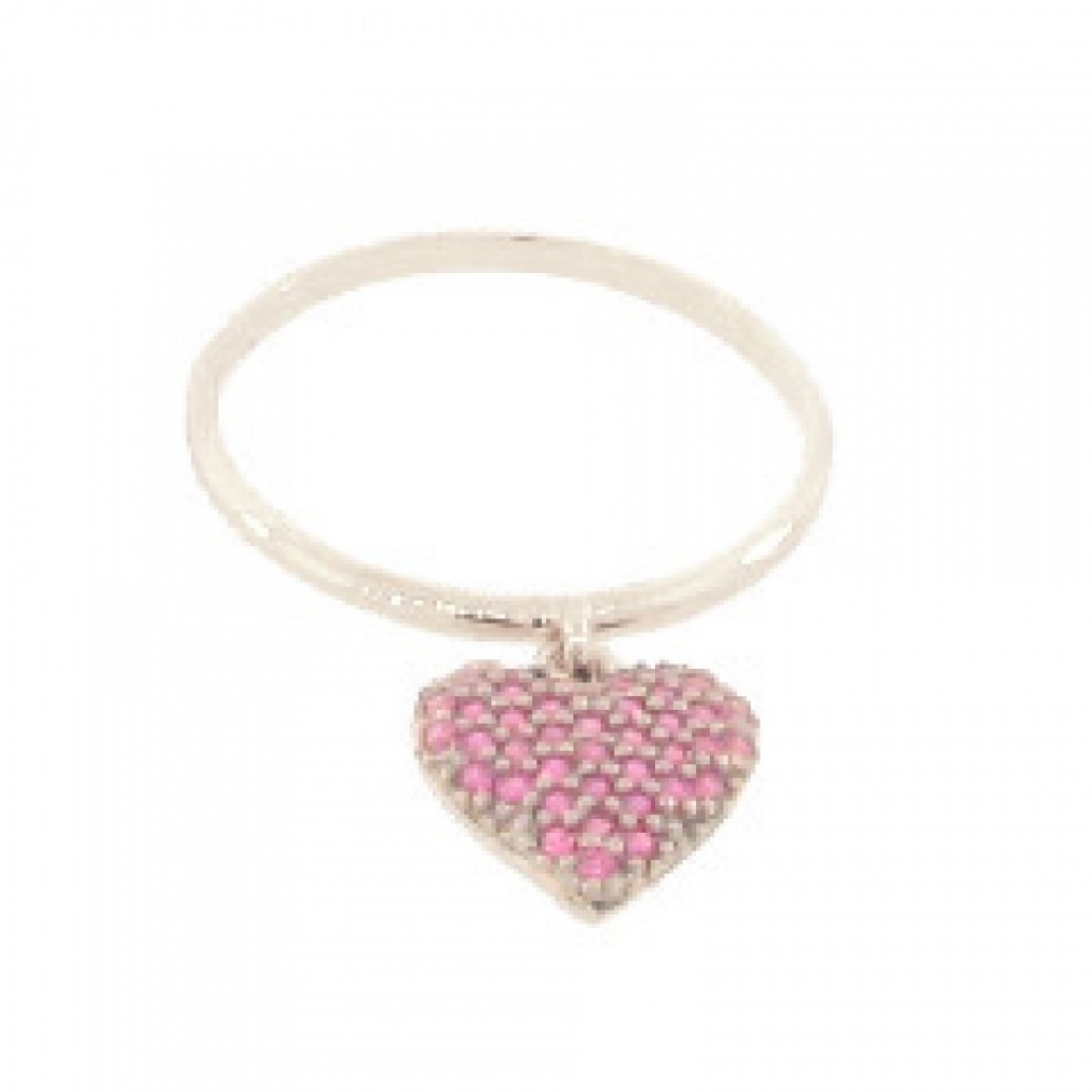 Anel coracao pendurado zirconia vermelha, prata com banho de ouro. 141375..