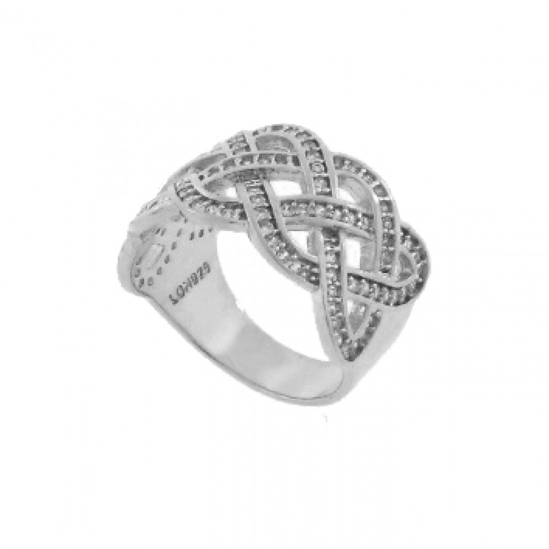 Anel trancado zirconia cristal, prata com banho de ouro...