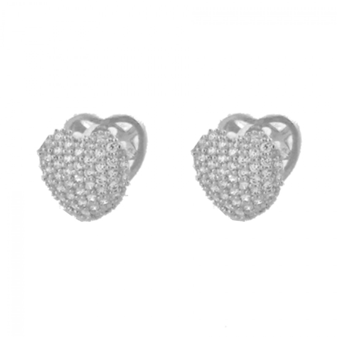Brinco argola media de coração zirconia cristal, vazado atras. 8x8mm, prata. 351645