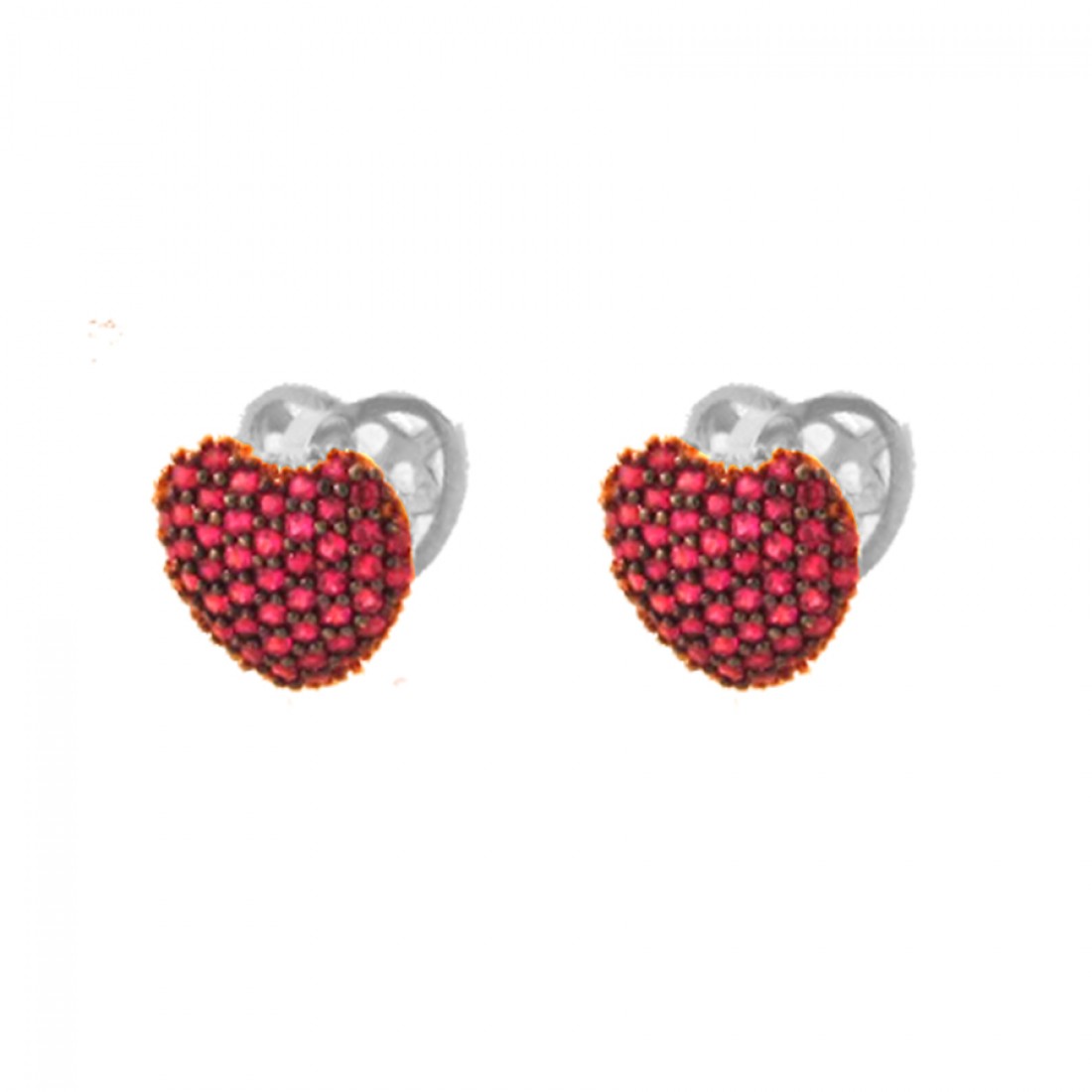• Brinco argola media de coração zirconia vermelha, vazado atras. 8x8mm, prata. 351646