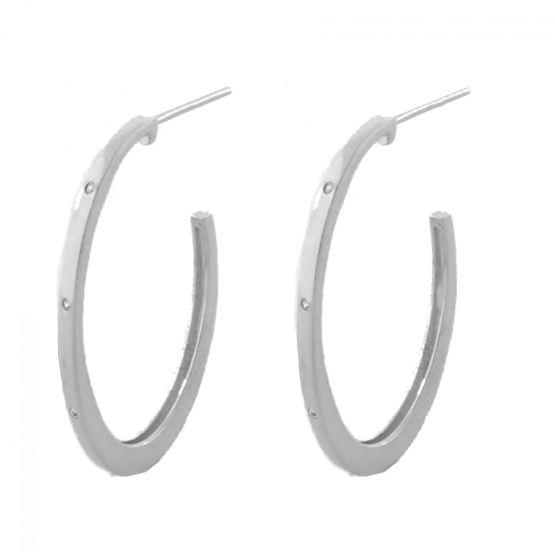 • Brinco meia argola oval grande lisa com 3 zirconias cristal. 31.5mm, prata. 351564