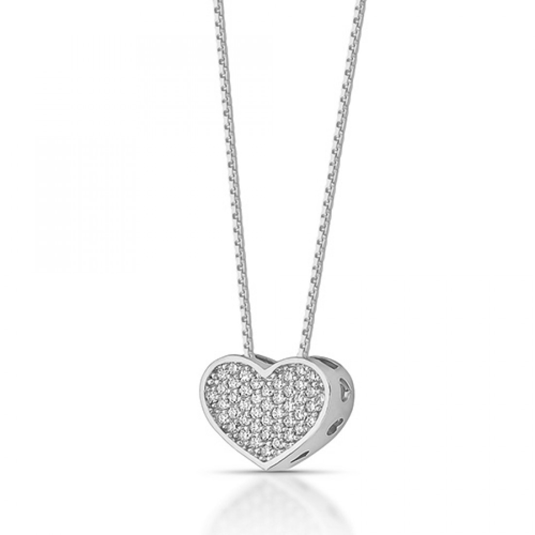 • Colar coracao reto todo cravejado zirconia branca,  Prata. 360517