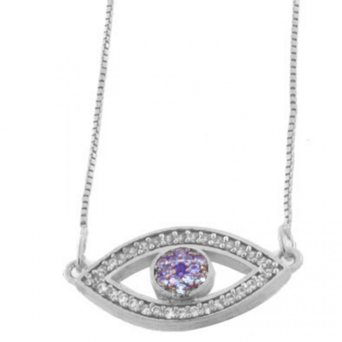 Colar olho grego zirconia azul safira com zirconia cristal em volta. 160644