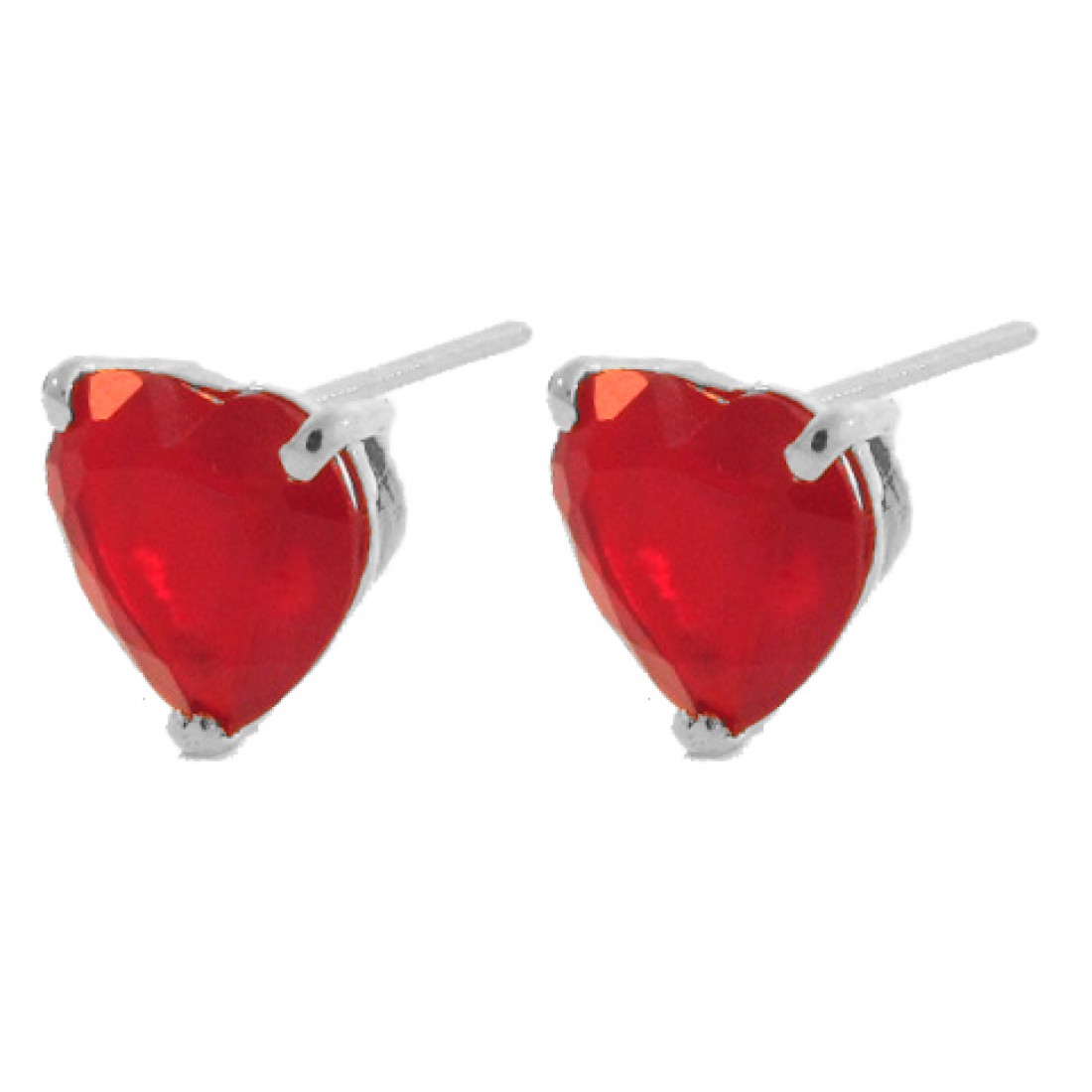 • Brinco coracao pedra vermelho rubi, Prata. 350046