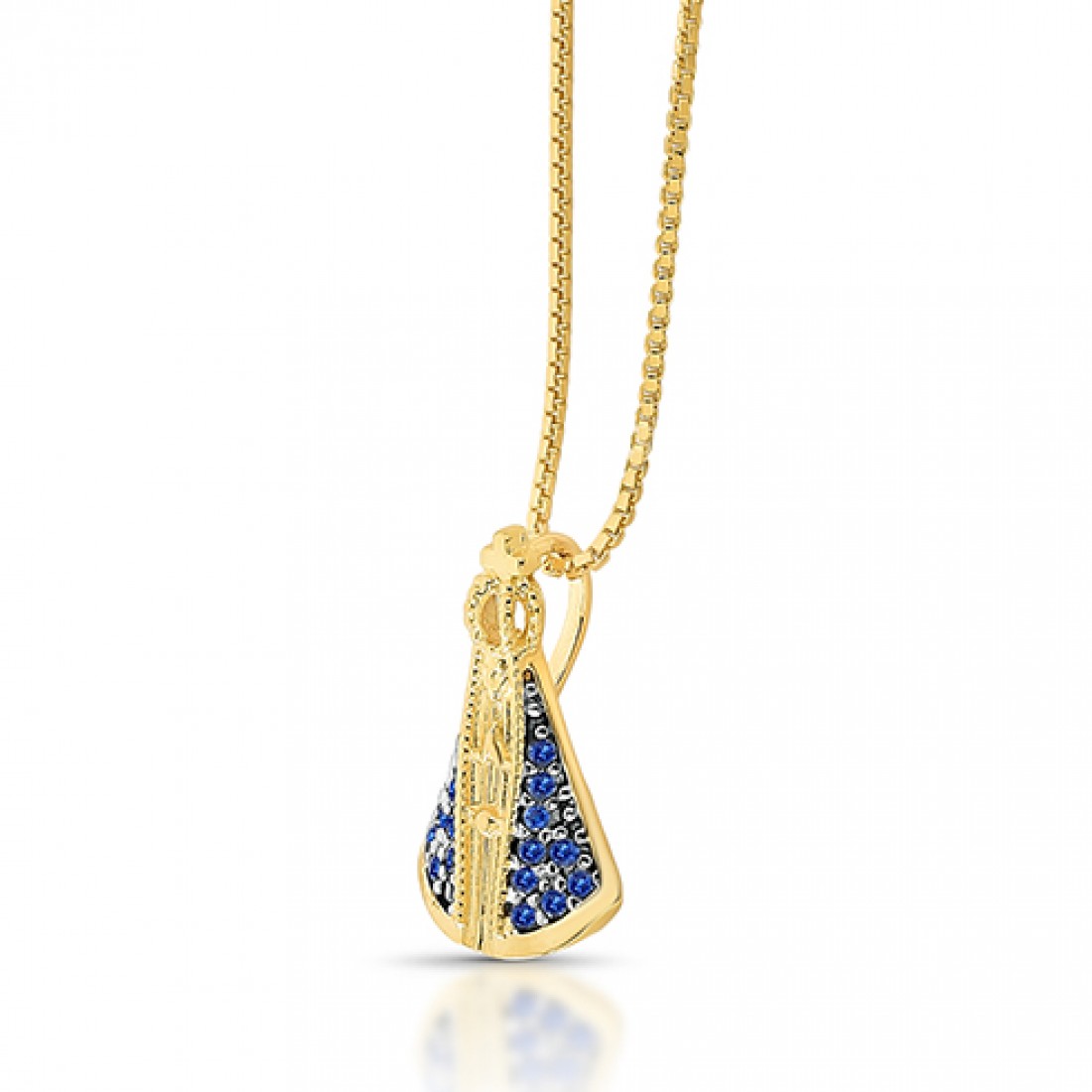 • Colar Nossa Senhora 15mm mando zirconia azul, corrente 45cm. 1620822
